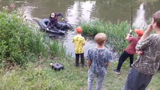 Die drei demonstrierten, wie wichtig Teamwork ist, um einen großen Wels gemeinsam sicher und sorgsam an Land zu ziehen.