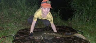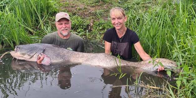 In der Nacht biss bei Armin an der Angel ein riesiger Wels. Erst am Morgen konnte er sicher aus dem Wasser gezogen werden. Auch hier war wieder Teamwork nötig, denn den 204cm großen Wels konnte er unmöglich allein aus dem Kanal ziehen.